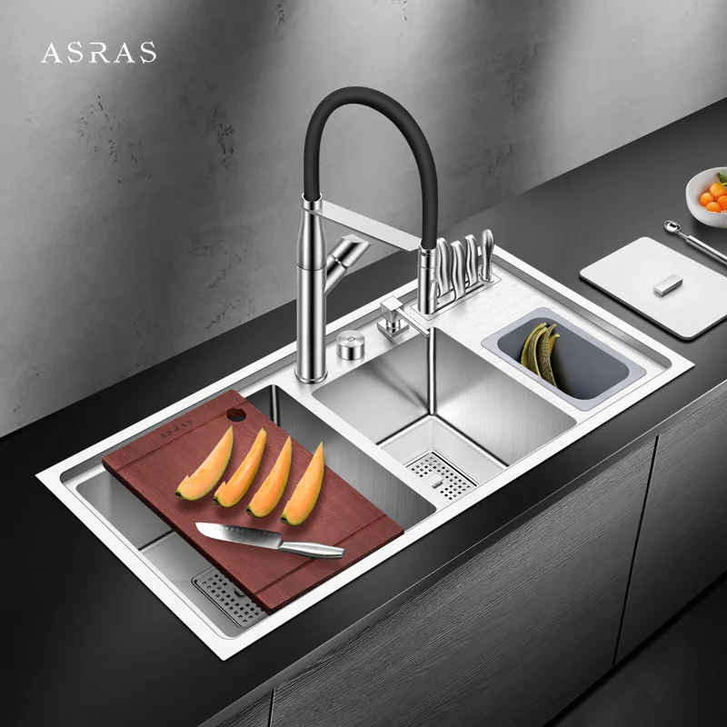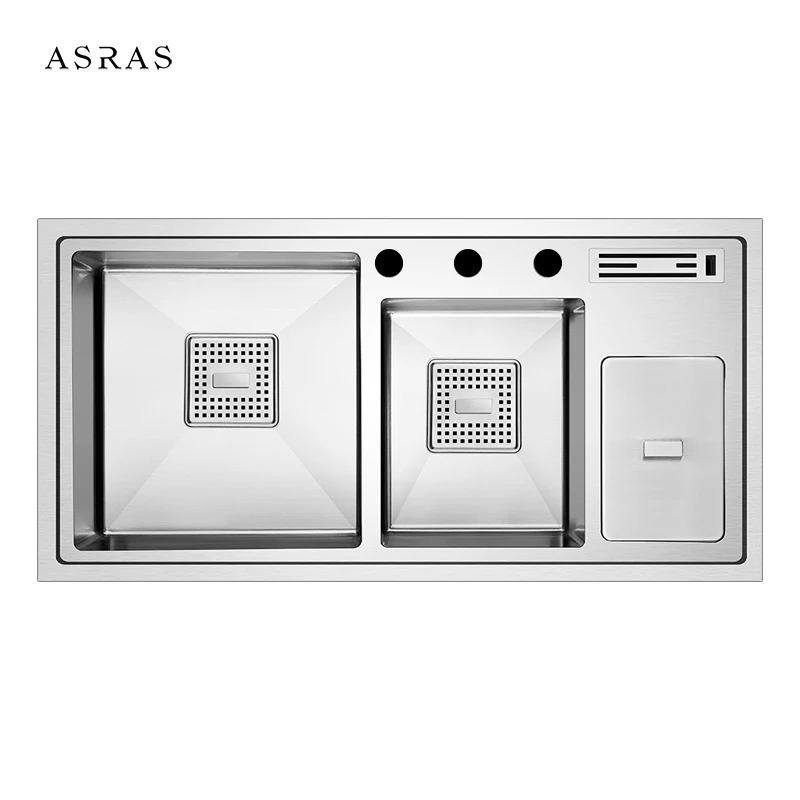 Special Offer Asras 9045L+3059 SUS304 Handmade Kitchen Sink Twin Bowl Multipurpose Trash Bin Kitchen Tap Free Shipping DHL Discount 0% Today!
